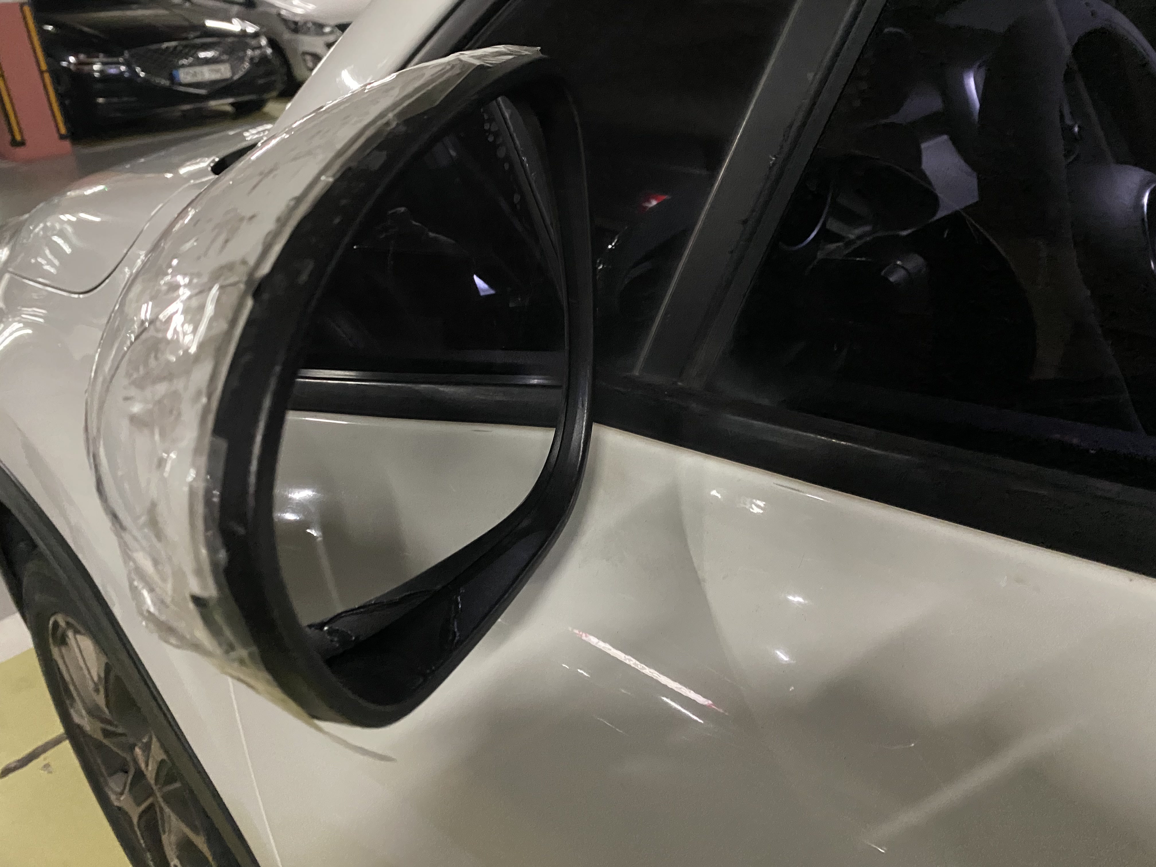 주섬 주섬 본드와 테이프로 커버등을 맞추고 깨진 미러도 결합하여 어찌 운행은 될 듯 한데 운행을 위해 급하게 먼저 미러만 주문 하여 장착하였다. 외관이야 볼품없지만 우선은 운행한 후 사이드 미러 어셈블리를 교환하여야 하며 차체의 스크레치도 덴트등 복원해야 한다.