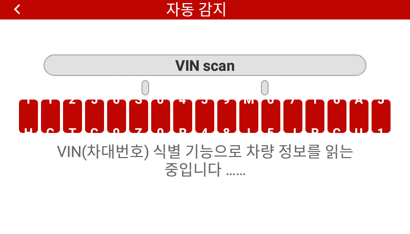 해당차량의 브랜드를 터지하면 자동감지화면이 나오면서 차량의 VIN을 스캔하게 되는 데 일부 지원되지 않는 차량도 있다. 운행하고 있는 2010년식 YF 쏘나타도 VIN 자동감지는 되지 않고 수동으로 진단하였다.