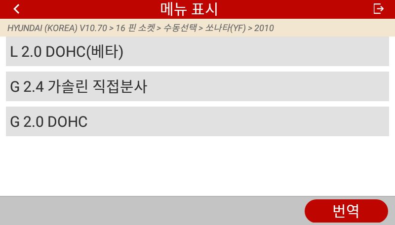 테스트할 차종은 LPi 차종이라 L2.0 DOHC(베타) 항목을 선택하였는데 베타는 세타의 오자가 아닐까 하는 생각인데 어째든 다른 차종의 항목을 보아도 대체로 누락없이 해당 차종의 연식, 엔진형식을 지원하고 있다.